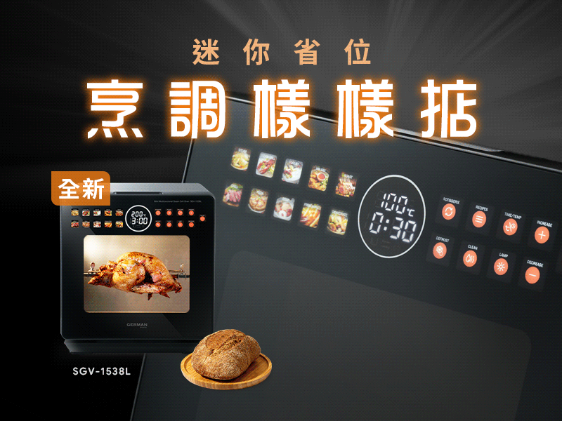 全新迷你多功能蒸烤焗爐 (SGV-1538L)正式登場!在廣受好評的SGV-1518及SGV-1528K的基礎上,帶來更時尚易用的全新升級版。今次由黑白按鍵、旋鈕進化成彩色圖像輕觸控制面板,介面清晰,操作一目了然,即使長者或廚房新手都能輕鬆掌握,輕鬆享受下廚樂趣!