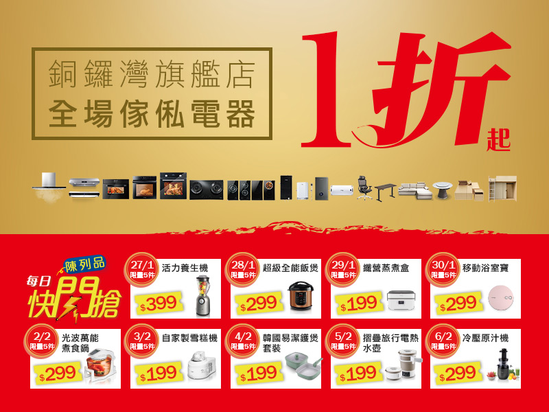 慶祝德國寶喬遷擴充 銅鑼灣旗艦店全場傢俬電器1折起
